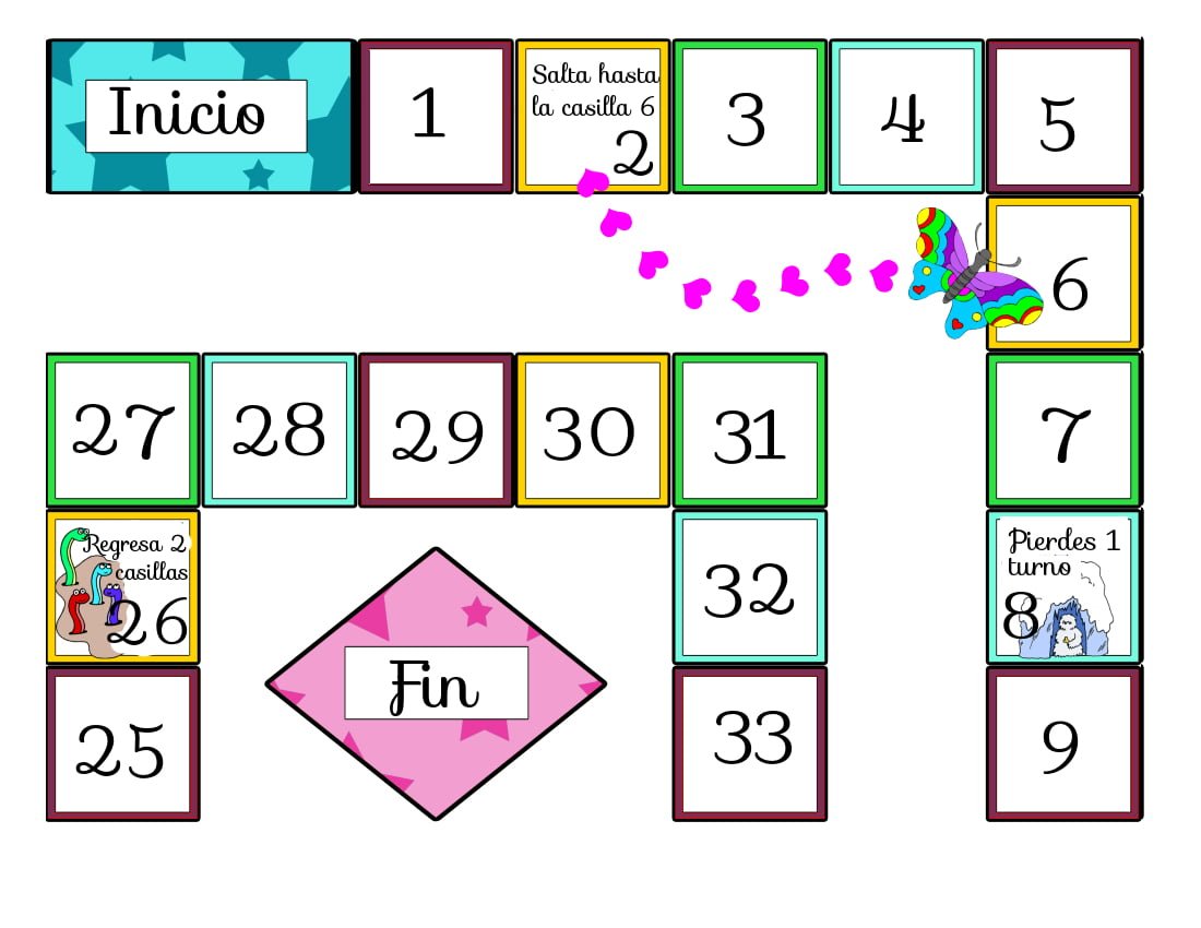 Si cae en una casilla amarilla toma una tarjeta amarilla y resuelve la actividad de esta.